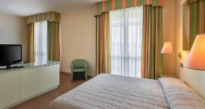 Doppelzimmer Savoia: ca. 25 m² inkl. Dusche, 5.-6. Stock, französischer Balkon, Blick in den Garten oder Innenhof