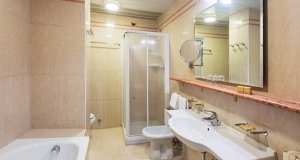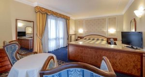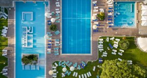 Kur- und Wellnessabteilung, große Thermalwasserlandschaft: 3 Außenpools mit Hydrotherapie (ca. 36° C), Unterwasserliegen, Hydromassage-Bänke und Kaskaden, Jacuzzi, Innenpool (ca. 35° C) mit Boden-Geyser, Nackenmassage-Düsen, Antistress-Hydromassage-Liegen, Kneippbecken, finnische Sauna, Türkisches Bad und Erlebnisduschen, Fitnessraum.