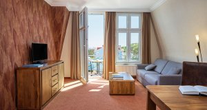 Junior Suite Meerseite (2./3. Etage): 50-60 m², getrennter Wohn- und Schlafraum, Schlafcouch, kleine Küche