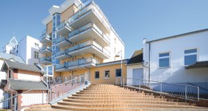Gäste des Strandhotel Prinz von Preussen erreichen den Wellnessbereich über einen Lift. Gäste des Strandhotel Luise von Preussen über den Innenhof.