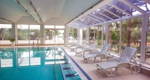 Hoteleigenes professionell ausgestattetes Gesundheitszentrum mit Behandlungsräumen, 2 Meerwasserpools: ein Becken zur freien Nutzung für alle Gäste (Treppeneinstieg, ca. 19 m) sowie ein Therapiebecken (ca. 10 m, 35° C, Nutzung nur nach ärztlicher Verordnung, wenn der Kururlaub gebucht wurde), 2 finnische Saunen (gegen Gebühr), Fitnesscenter, Aerobichalle, Kampfsporthalle, Hotelpark, u.a. Fußball-, Tennis- und Basketballplatz. Die Arztkonsultation ist in deutscher und/ oder englischer Sprache möglich. Die Anwendungen finden auf Englisch statt.