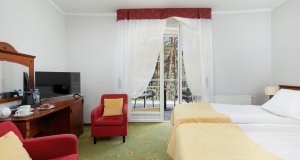 Hoteleigene Behandlungsbasis, Kosmetiksalon, Hallenbad (Treppeneinstieg, 12 x 5 m), Whirlpool und Trockensauna stehen zu den Öffnungszeiten und außerhalb der Therapiezeiten kostenlos zur Verfügung. Die Konsultation findet i.d. R. samstags oder sonntags statt und ist in folgenden Sprachen möglich: Deutsch, Polnisch.