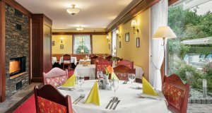 Empfangsbereich mit Rezeption (7:30-19 Uhr): Deutsch, Englisch, Tschechisch | Lift, Gesellschaftsraum, Tagesbar, Speiseraum mit Kamin, Café, Sommerterrasse; Tanzabende, Kofferservice. Kostenfrei: W-LAN. Gegen Gebühr: Parkplatz am Hotel, Mitnahme von Haustieren (nur in der Dependance und auf Anfrage, ca. 10 €/Tag).