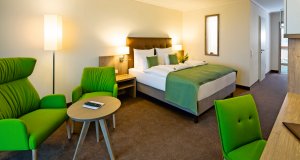 124 geräumige, freundlich eingerichtete Nichtraucherzimmer. Alle mit Bad und DU/WC, Föhn, SAT-TV, Radio, Telefon, Leihbadetasche mit Bademantel und -handtuch, Kühlschrank, Safe, Balkon oder Terrasse.